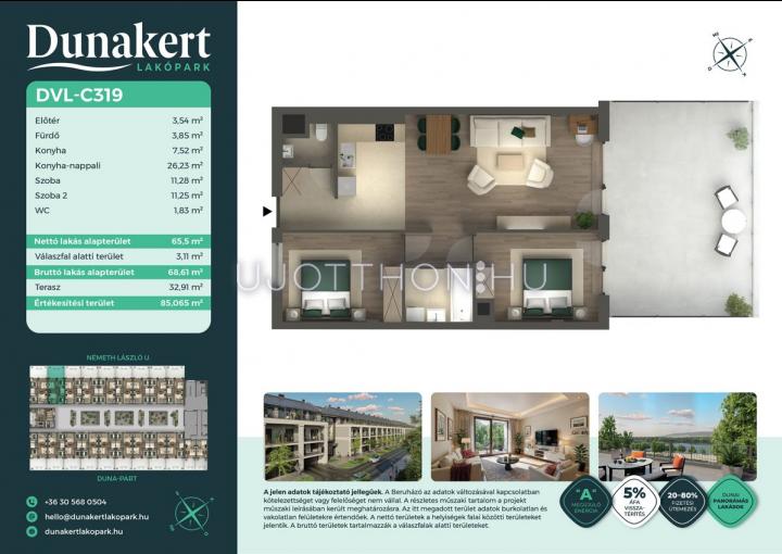3 szobás 66 m2-es Lakás Dunakert - Vác, Kisvác-Iskolaváros, Németh László utca