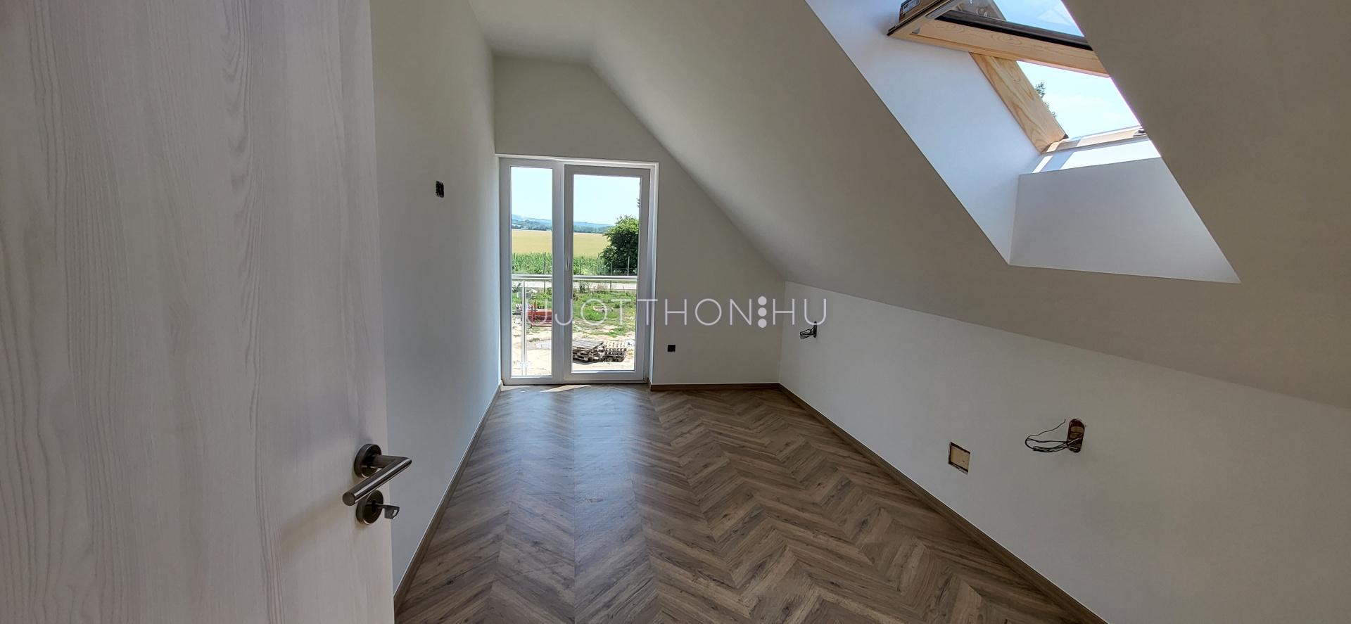 - 71 nm-es. Földszintjén konyha, WC, étkező, kertkapcsolatos nappalival. Tetőtérben 2 háló, fürdő+WC,és gardrób.