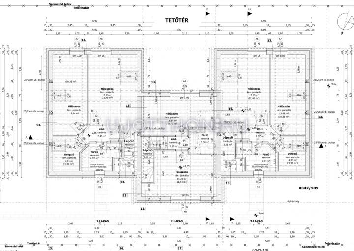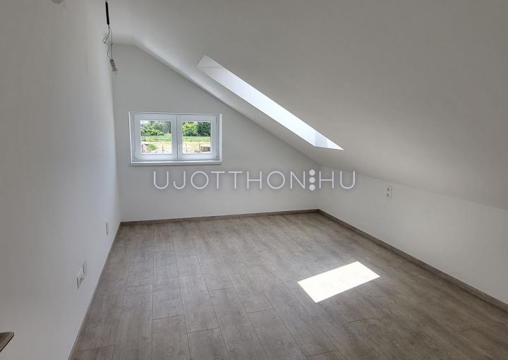 A tetőtérben két háló, fürdő,+WC, és egy gardrób található.