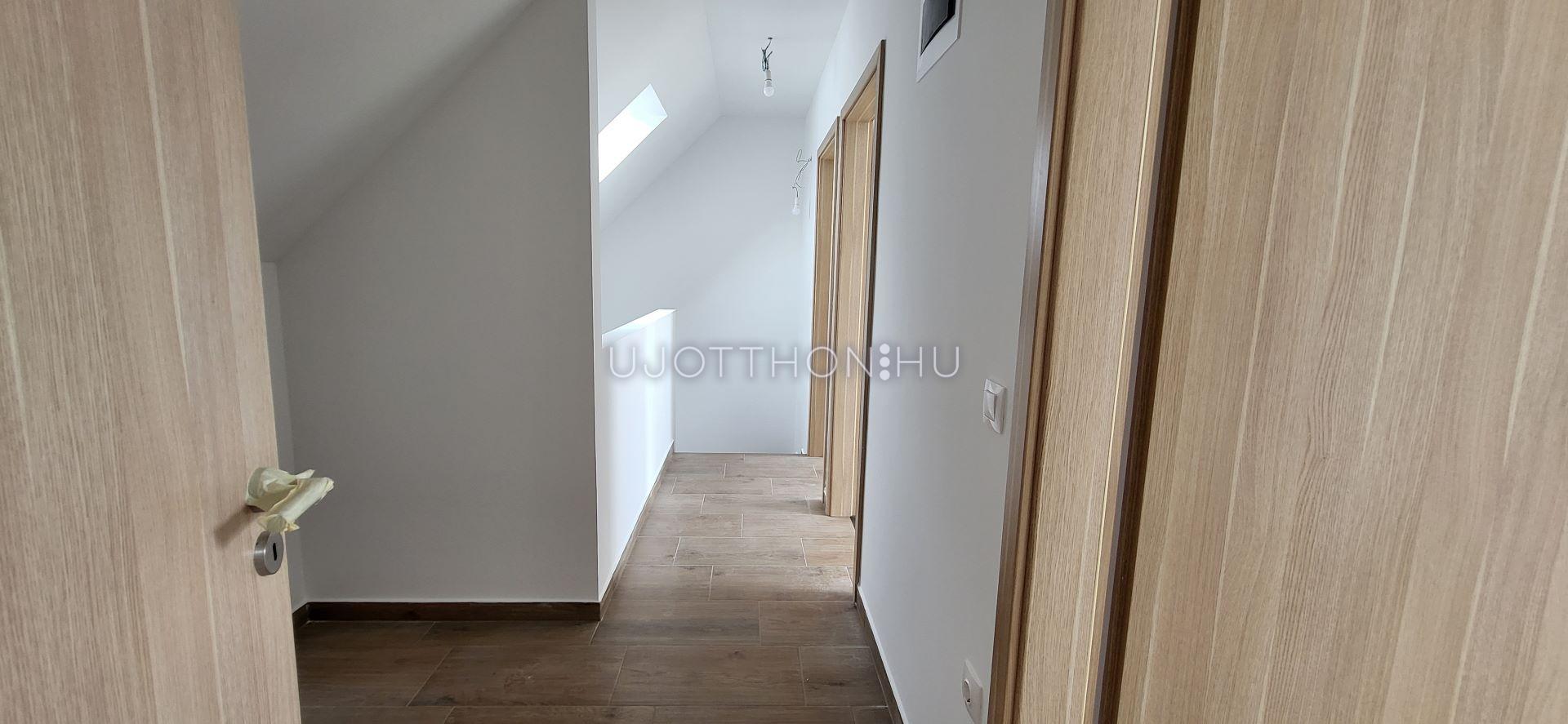 A tetőtérben két háló, fürdő,+WC, és egy gardrób található.