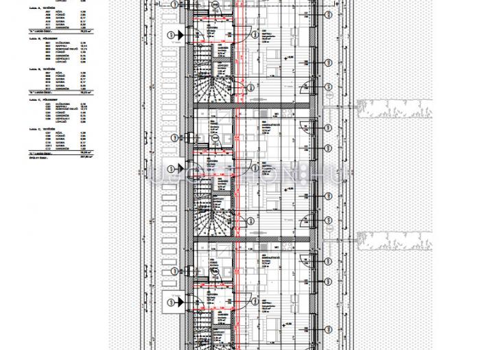 A jelenleg épülő 3 és 4 lakásos sorházak belső kétszintesek, 71 nm, 73 nm, 84 nm, és 96 nm-es kivitelben elérhetőek.