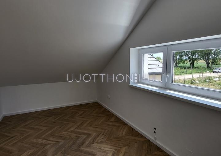 A tetőtérben két háló, fürdő,+WC, és egy gardrób található.