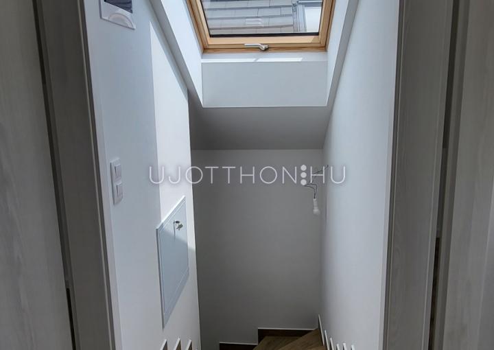 A tetőtérben két hálószoba , közlekedő és egy zuhanyzó+WC található.