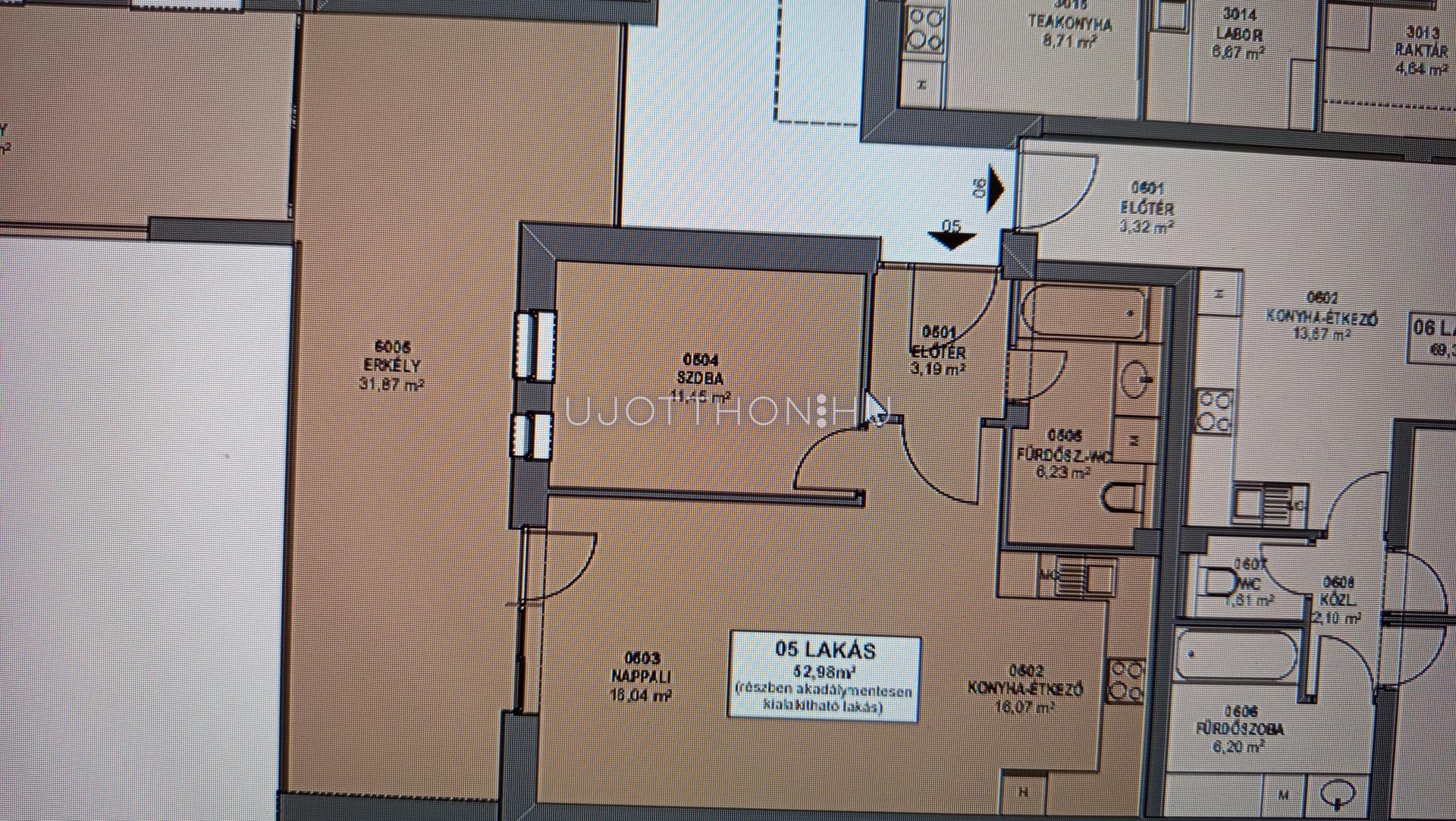 1. Emelet, 6. lakás: 69,37 m2 + 21,73 m2 erkély a bruttó ára: 116 000 000 Ft.
